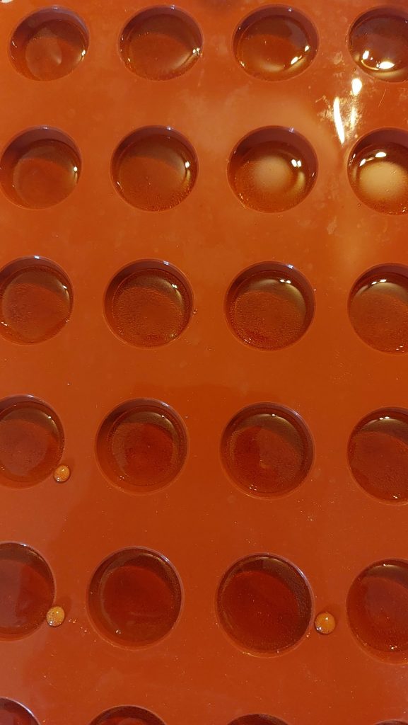 Couler le sirop obtenu dans des moules en silicones et attendez que les bonbons soit suffisamment froid avant de démouler.